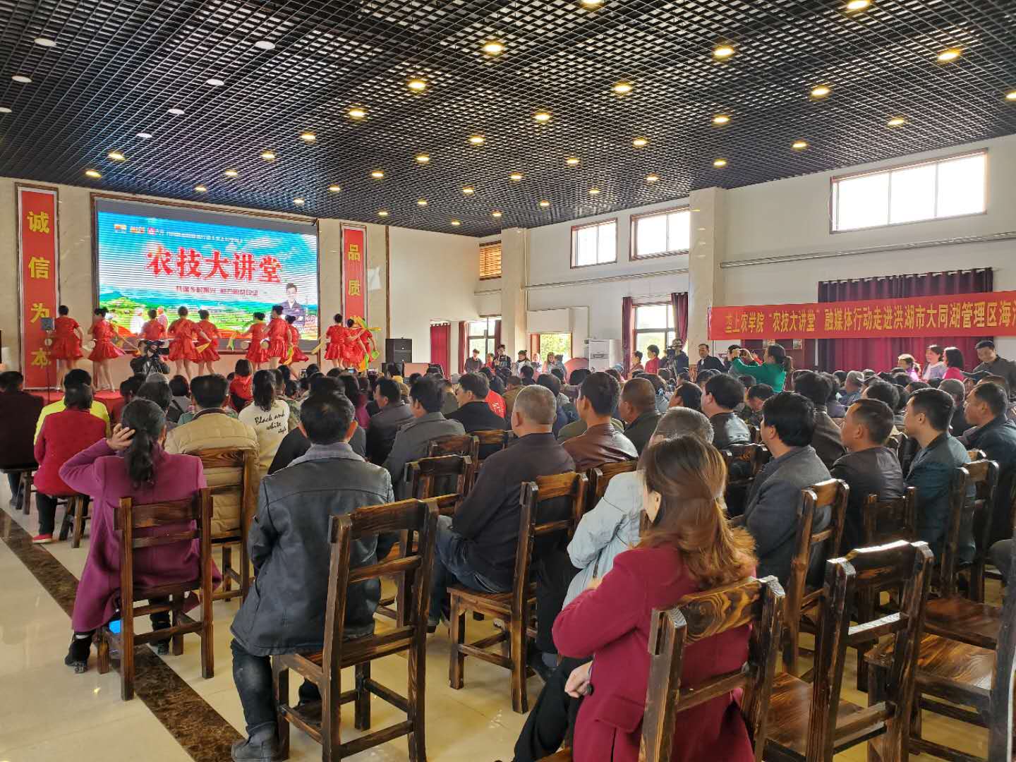 聽說在家門口就能和水產(chǎn)專家面對(duì)面交流,今天上午,大同湖管理區(qū)海溝社區(qū)的近千名鄉(xiāng)親早早的就來到“課堂”,等待水產(chǎn)專家來給大家“傳經(jīng)送寶”。湖北省稻田綜合種養(yǎng)體系首席專家湯亞斌老師作為今天的主講老師,一上臺(tái)就給鄉(xiāng)親們提出了一個(gè)問題——小龍蝦會(huì)游泳嗎?這個(gè)問題很快讓現(xiàn)場(chǎng)的鄉(xiāng)親們分成了兩派,并當(dāng)場(chǎng)展開了熱烈討論。見鄉(xiāng)親們的學(xué)習(xí)熱情一下子就被調(diào)動(dòng)起來,湯老師很快公布了答案。原來,小龍蝦在小的時(shí)候是會(huì)游泳的,等到成熟以后就不會(huì)了。盡管現(xiàn)場(chǎng)有很多鄉(xiāng)親都是龍蝦養(yǎng)殖好手,可這個(gè)答案一公布讓不少鄉(xiāng)親大跌了眼鏡。