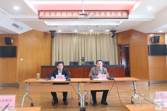 湖北省纖維檢驗局召開武漢市商超紡織服裝產品質量約談會。記者張城攝
