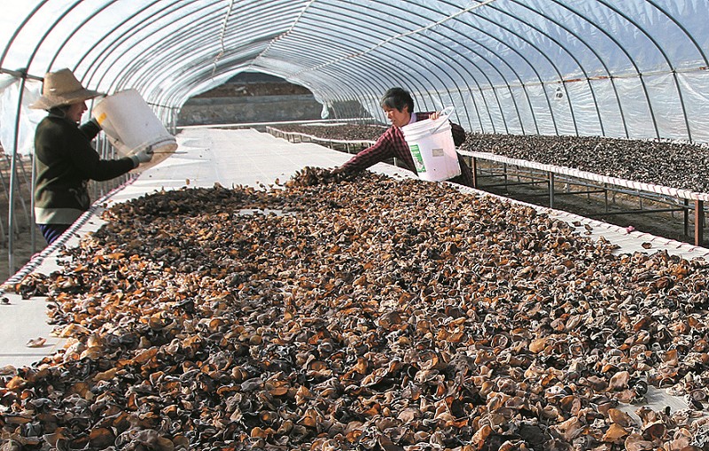 4月6日,房縣土城鎮(zhèn)通省館村農(nóng)民正在食用菌扶貧產(chǎn)業(yè)基地晾曬黑木耳。房縣實施“公司+專業(yè)合作社+技術入股+流轉土地+務工”的扶貧模式,規(guī)模化發(fā)展黑木耳、香菇產(chǎn)業(yè),促進農(nóng)民致富。目前,該縣耳菇產(chǎn)業(yè)已成為農(nóng)民增收的支柱產(chǎn)業(yè),耳菇產(chǎn)品銷往日本、德國、比利時等18個國家,年均實現(xiàn)收入2.5億元,創(chuàng)匯9000萬美元。