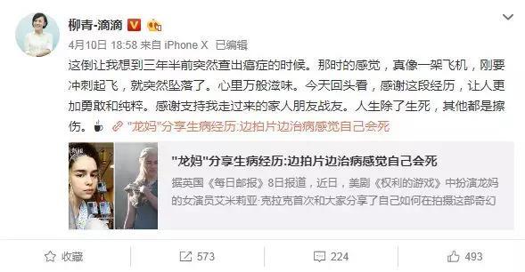 過去幾個(gè)月,柳青在朋友圈和微博上的公開表達(dá)逐漸增多。就在一周前,柳青還曾發(fā)微博回憶此前身患癌癥的經(jīng)歷,感慨“人生除了生死,其他都是擦傷。”并表示自己非常感謝這段的經(jīng)歷,讓人更加勇敢和純粹。