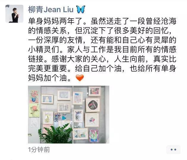 4月16日,柳青在個(gè)人朋友圈透露,自己已經(jīng)離婚兩年,現(xiàn)在的身份是“單身媽媽”。柳青同時(shí)表達(dá)了對外界關(guān)心的感謝,表示“人生向前,真實(shí)比完美更重要。給自己加個(gè)油,也給所有單身媽媽加個(gè)油。”