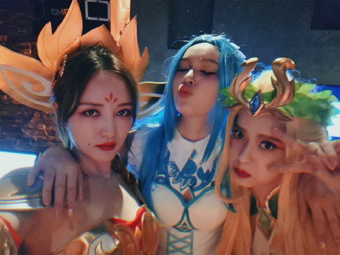 4月17日下午,林允曬出16日過生日時所拍攝的照片,照片中林允穿著cos服,戴著藍色假發,裝扮成王昭君,很是美麗動人。周潔瓊、Vava、張藍心也現身聚會現場,cos成不同的人物,姐妹花們的合影十分養眼。