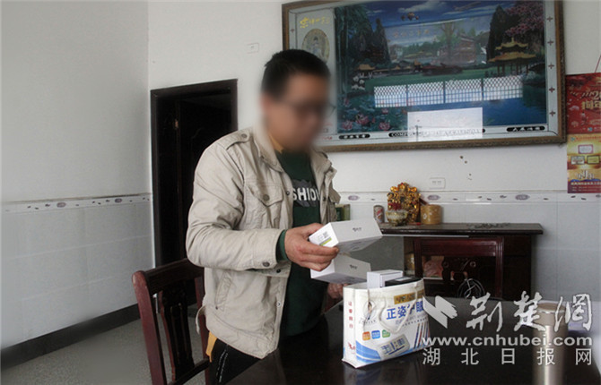 秦前濤向記者展示自己做小生意時(shí)批發(fā)的眼鏡。攝影 通訊員 陳芬