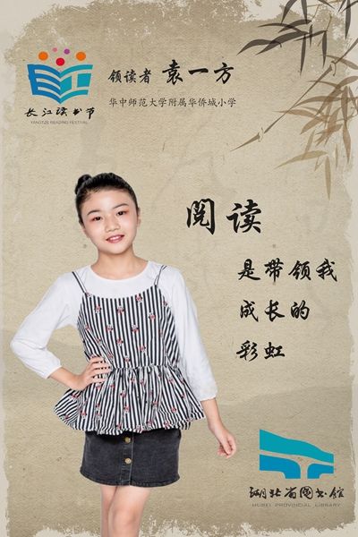 我是袁一方,是長江讀書節小領讀者,今年十歲,我現在是武漢華僑城小學五年級的學生。我熱愛閱讀,對于我來說,閱讀是帶領我成長的彩虹。