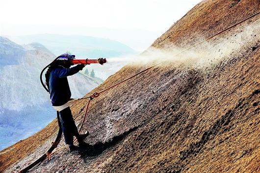 “這叫客土噴播法,生態修復效果好。”干了5年生態修復工作的羅師傅說,泥漿里有草籽、藤條種子和肥料,噴播后10多天就能發芽見綠。