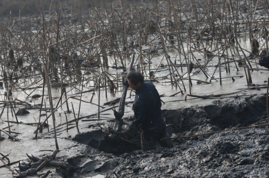 (圖為芝麻湖蓮藕基地農戶采蓮現場)