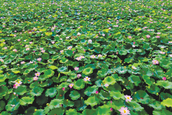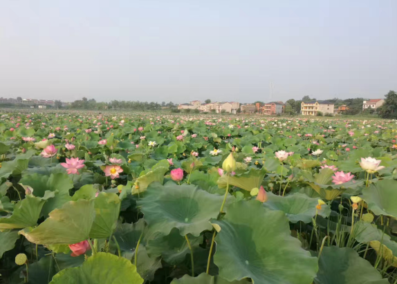 (長江村蓮子扶貧基地荷花逐一盛開、爭奇斗艷)