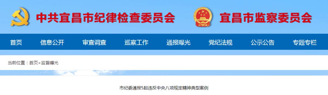 今年以來,宜昌市紀檢監察機關嚴肅查處了一批違反中央八項規定精神問題。現將5起典型案例通報如下: