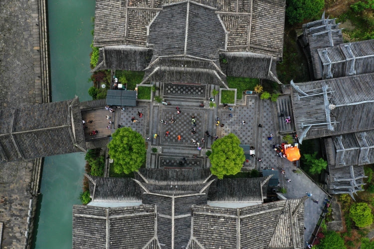 5月2日,游人在重慶市黔江區(qū)濯水古鎮(zhèn)游玩(無人機拍攝)。新華社發(fā)(楊敏 攝)