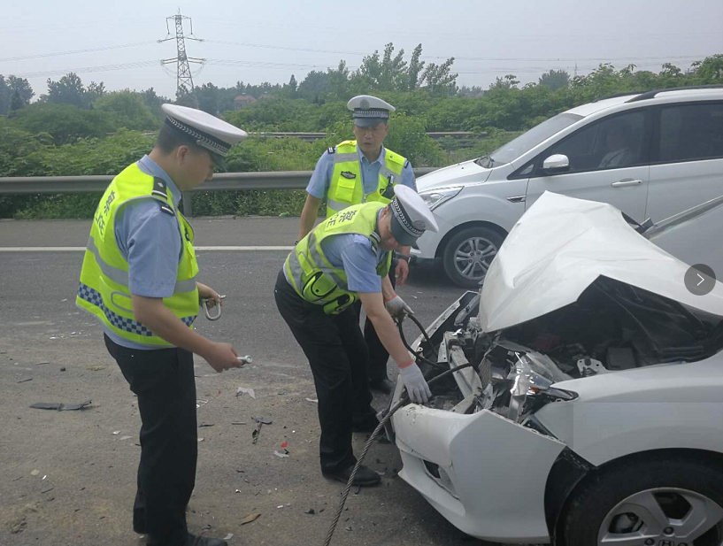 【11:00】滬渝高速北河收費站主干道兩起追尾,一輛轎車剎車抱死不能移動,占據兩條車道,導致后方通行緩慢。民警用警車隨車鋼纜固定后,讓過路貨車強行拖到應急車道。