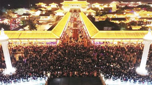 圖為:五一假期,襄陽盛世唐城景區《大唐倚夢》夜游演藝吸引了無數游客