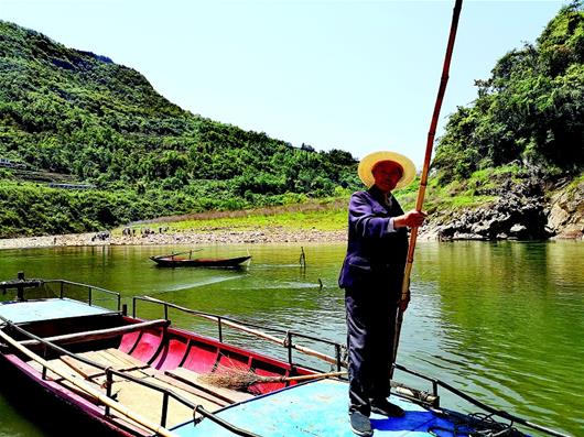 這一套嫻熟的動(dòng)作,萬(wàn)其珍早在1989年正式從叔父手中接過(guò)篙竿前便已經(jīng)練就了,“沒(méi)有刻意去學(xué),免費(fèi)擺渡是我們家族不成文的約定,耳濡目染中就會(huì)了。”萬(wàn)其珍說(shuō)。