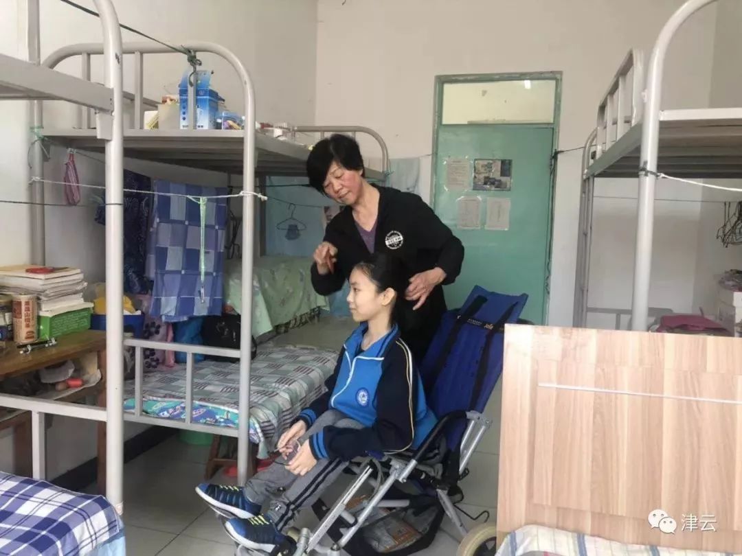 學(xué)校為了能讓劉宣諾安心學(xué)習(xí),還特意為她們祖孫二人提供了一間宿舍,在宿舍到教室路上的樓梯處修了可供輪椅進(jìn)出的緩坡,教室也沒有按年級輪換,而是一直安排在一樓。此外,由于宣諾無法堅持半天時間坐在課桌前,宿舍離教室又有一定距離,課間10分鐘不夠她們往返。學(xué)校還特意騰出了教室隔壁的一間放置課本的倉庫,供宣諾課間躺下休息。