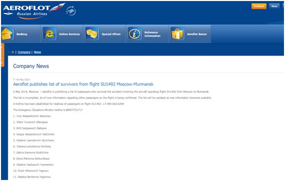 與此同時(shí),俄航在官網(wǎng)上公布了目前已經(jīng)確認(rèn)的幸存者名單: