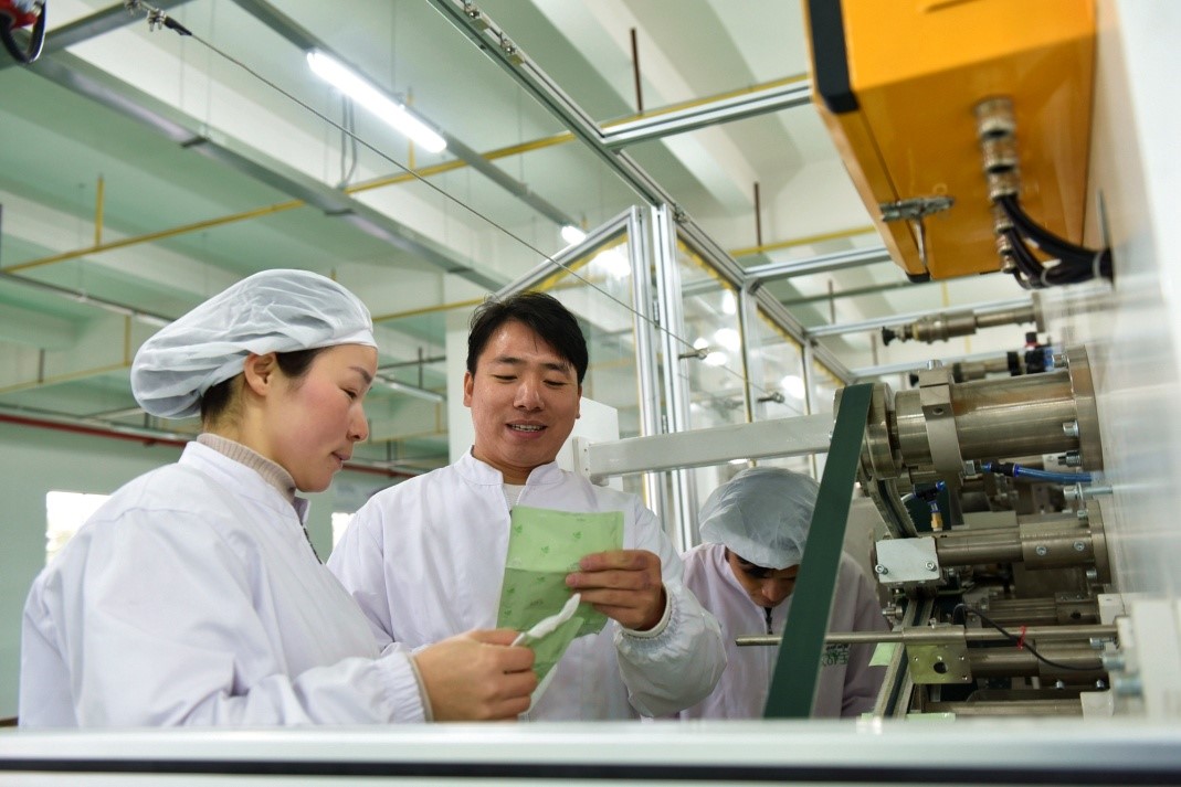 一片片艾葉經過幾十道工序,生產出一片片衛生巾系列產品,創造"點艾成金"神話的是艾舒寶生活用品公司。