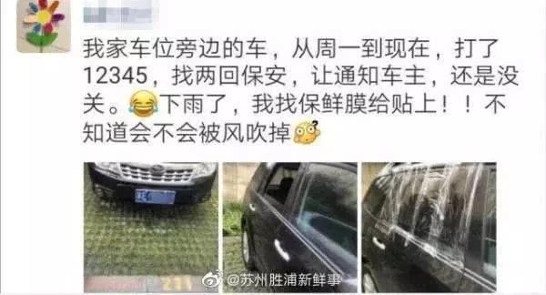 “我家車位旁邊的車,從周一到現在,打了12345,找兩回保安,讓通知車主,還是沒關。
