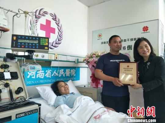 中新網鄭州5月10日電(記者韓章云)造血干細胞移植是當前治療白血病的有效途徑之一,因此在醫學界,造血干細胞又被美稱為“生命種子”。5月10日,河南三名志愿者在鄭州同日完成造血干細胞采集,他們捐獻的“生命種子”,將為三名白血病患者帶去新生。