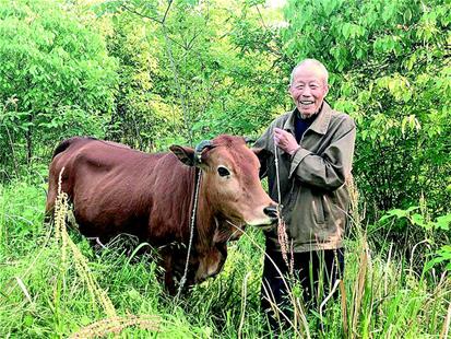 不需要耕地的時候,他早上將兩頭牛牽到山坡上去放養,太陽落山再牽回來。山路狹窄陡峭,沿途荊棘叢生,老伴擔心他的安全,勸他把牛賣掉,但他一直不肯,不想失去這筆進賬。