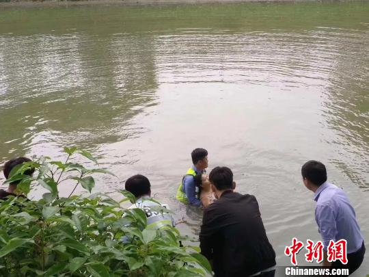 民警跳入河中救起落水女子。 供圖 王子濤 攝
