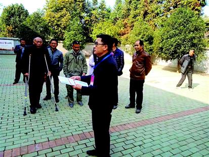 去年3月25日,王英華騎摩托車到工會送文件出了車禍,右腿股骨粉碎性骨折,植入鋼板,傷還沒有完全好,他就拄著雙拐上班了。