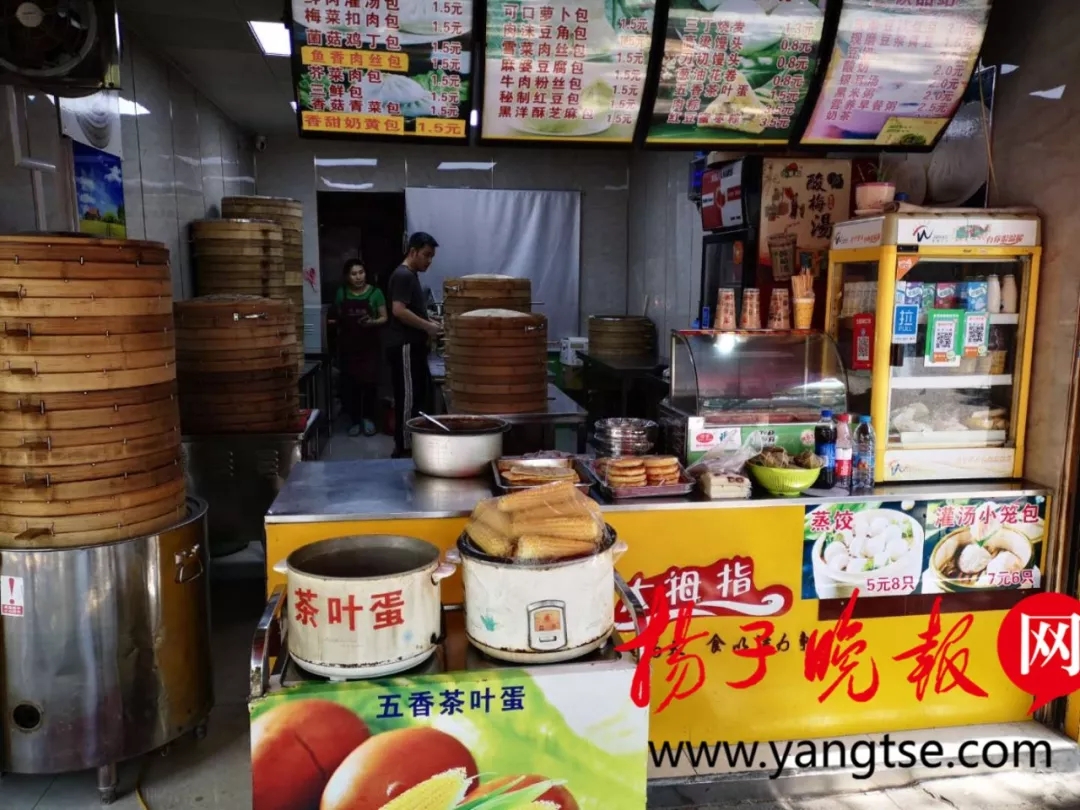 5月22日上午,記者來(lái)到位于西園路西公交站旁的大拇指包子鋪,店里除了賣各種包子,門口還擺放著豆?jié){、烤腸、玉米、茶葉蛋等早餐食品。