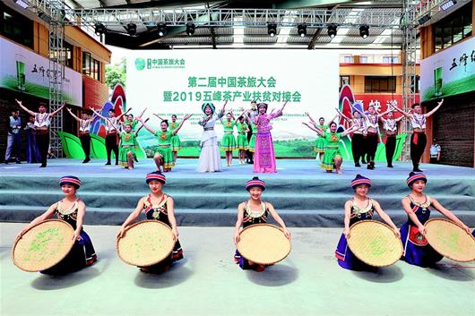 圖為:中國茶旅大會上體現土家特色制茶的舞蹈表演。(視界網閆京東攝)