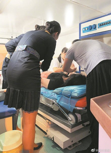劉先生表示,妻子生完孩子沒多久,時不時就會有胸悶的感覺,懷疑可能有心臟病。換座位之后,杜女士的情況仍然沒有緩解,她表情痛苦,一直說自己胸悶,無法呼吸,乘務組馬上使用機上氧氣瓶給她吸氧,同時廣播尋找機上醫護人員的幫助,但杜女士身體不受控制抖動,無法配合。乘務長江蕾立即把情況報告了機長。聽到廣播后,一位乘客表示自己是護士可以幫忙,自告奮勇加入到了急救中。