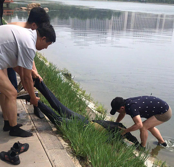 6月5日11時50分左右,易貴平、劉勝軍午飯后到單位附近的友誼公園散步。在走到友誼公園湖面北側時,發現距岸邊約4米的水面上,好像漂浮著一個人。二人迅速跑到岸邊仔細查看,發現那人面朝下一動不動浮在水面上。