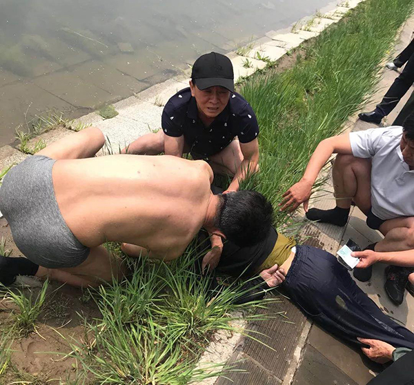 這是一場和死神的賽跑!上岸后,易貴平迅速將落水者頭朝下順著岸邊的斜坡放好,猛勁敲擊落水者的后背,敲擊了60多下以后,落水者的手腕動了一下,隨即又咳了一聲。