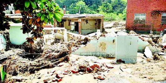學校操場上的圍墻和老食堂房屋被夷為平地。操場上停放的車輛被沖到下游的山溝,成了廢鐵。范有林老師的小汽車被水沖到3公里以外的河道上,他說:“學生都安全,這是最欣慰的事。”周吉富老師說:“我的車只開了不到一年,也心疼啊。不過我不后悔,作為老師,關鍵時刻就是學生的保護神,我們做到了!”