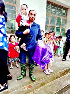 洪峰退去后,家長們趕到幼兒園,看到孩子們安然無恙,十分感動。