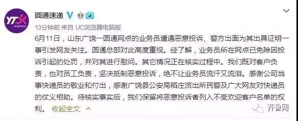 真如其所說,快遞員被投訴后,并沒有被扣工資,扣工資只是說辭?這似乎與圓通公司11日發布的聲明里提到的,“業務員所在網點已免除因投訴引起的處罰”說辭有出入。