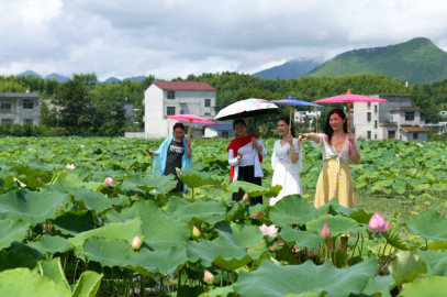 湖北省通城縣塘湖鎮狼荷村富源荷花基地以千畝香蓮種植農業為基底,采用不同于傳統的種荷收藕的思路,借助“生態+創意+ 旅游”的理念,種植觀賞實用型香蓮荷花,發展生態休閑觀光旅游農業,一畝觀賞性荷花的產值比普通種植蓮藕增收10倍以上,給當地百姓和貧困戶開辟了新的增收致富之路,為美麗鄉村建設增加了美麗的風景。