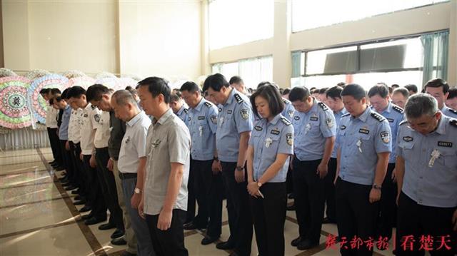 楚天都市報6月13日訊(記者葉文波 通訊員楊槐柳 黃娟)12日傍晚,天突然下雨,似乎也在為楊??奁?。年僅47歲的派出所副所長楊睿昏倒在辦公桌前,去世前還在寫工作安排,手邊是厚厚的辦案材料(詳見13日《楚天都市報》A08版報道)。13日上午,楊睿同志的追悼會在青山殯儀館舉行,親友、戰友、社區群干等數百人含淚與他道別。武漢市委常委、市委宣傳部部長張世華批示肯定“楊睿同志是新時代愛崗敬業的典型”。