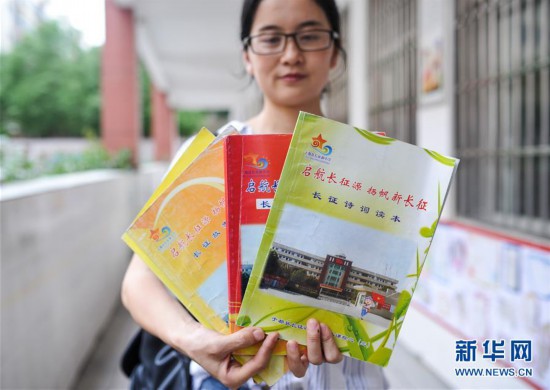 6月12日,江西于都長征源小學教師謝淑芳展示以“長征”為主題的校本教材。 新華社記者 李任滋 攝