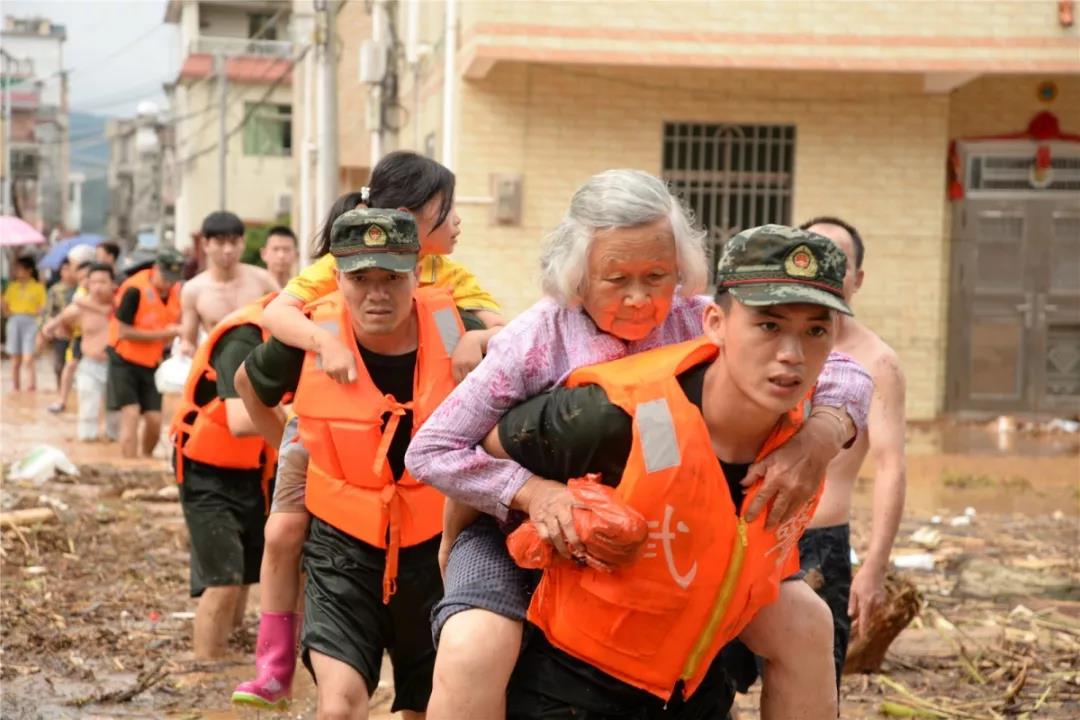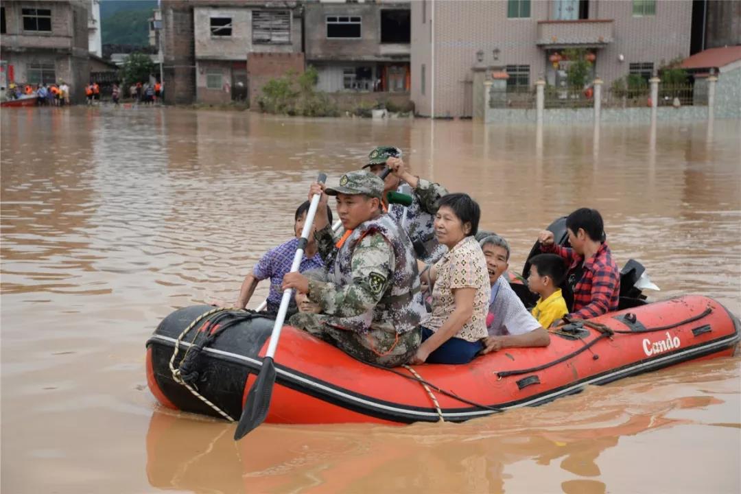 部隊官兵馳援轉移上千群眾。(圖片來源:河源日報)