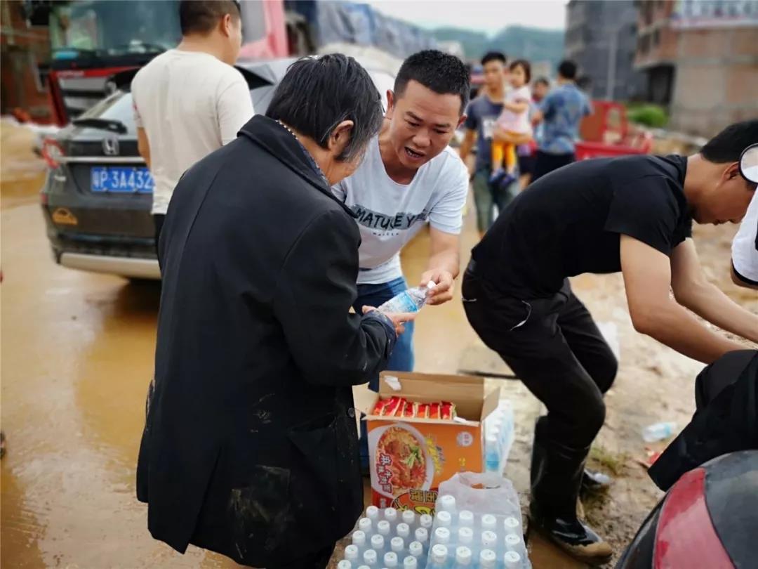 志愿服務隊為受災群眾發放食物和水。(圖片來源:河源日報)
