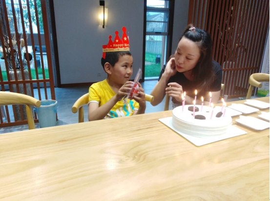 在大家的歡呼雀躍聲中,帶著生日帽,有點害羞但很可愛的湯子軒許下了生日愿望,吹滅了蠟燭,并親自將切好的蛋糕中的最大一塊遞給了朱玲莉的手上。"朱阿姨,謝謝你!"湯子軒面帶笑容的對著朱玲莉小聲地說。小家伙邊吃著蛋糕,邊愛不釋手擺弄著朱玲莉送給他的魔方。