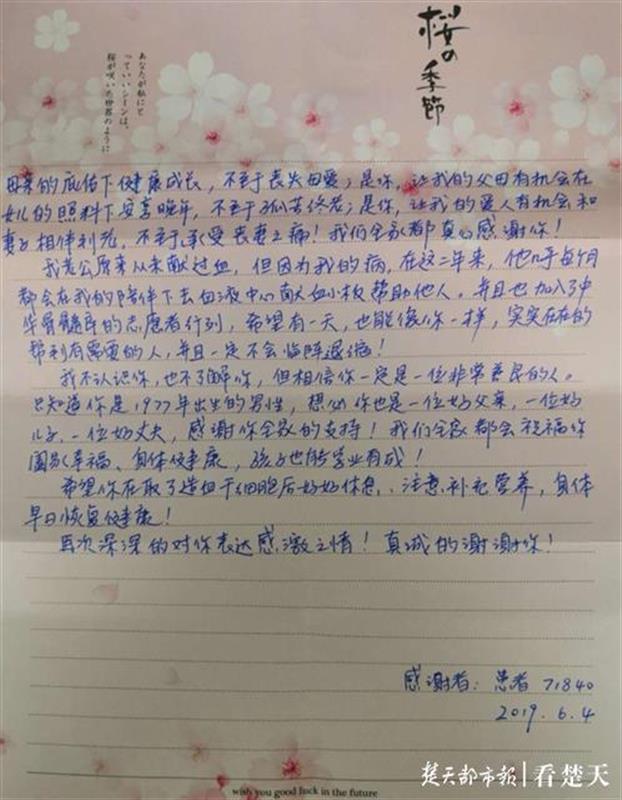 原標(biāo)題:“我終于等到了你!”鐘祥漢子捐髓救人,受捐者感謝信字字含淚