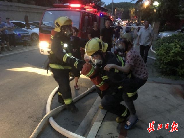 東湖高新區佛奧俊賢雅居小區居民樓發生電纜井火災,消防員背出被困群眾