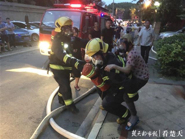 原標題:光谷一居民樓起火,消防員把氧氣面罩讓給老奶奶背她下樓!