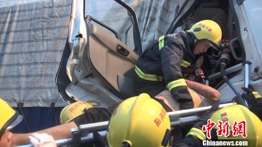 消防指戰員立即分成兩組展開救援,利用攜帶的破拆器材對兩輛追尾貨車駕駛室進行剪切,擴大救援空間。經過消防指戰員奮力營救,5時33分許,中間車輛駕駛室后排座被困者被成功救出;6時02分許,第三輛車中被困者被成功救出;6時20分許,中間車輛駕駛員遺體被成功取出。