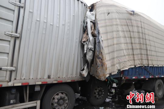 救援人員在現場看見,三輛重型掛車停在公路上,三車均受損嚴重,后兩輛車車頭部位發生嚴重變形,貨車碎片散落一地。第一輛車內兩名人員在救援人員達到現場前已被送往醫院救治。經過現場120醫護人員檢測,中間車輛駕駛員在救援人員到達現場前因傷勢過重,已無生命跡象。消防指戰員勘察后發現,中間車輛駕駛室后排座還有一人被困,第三輛車內也有一人被困。被困人員身體多處受傷,不斷發出痛苦呻吟。