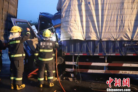 接到報警后,5時08分許,重慶黔江消防支隊特勤中隊指戰員及黔江濯水鎮專職消防隊員和四輛消防車到達事故現場,高速執法人員及120醫護人員也相繼到達現場。