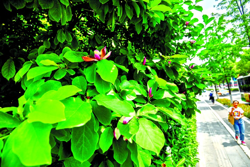 凌女士告訴記者:“紫玉蘭以往都是春天在光禿禿樹枝上先開花再長葉,今年不一樣,夏天長滿了葉子之后又開花了,花與綠葉混搭,都有點認不出來了,我還是頭一回看到,不過沒有春季開得那么盛。”