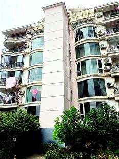 圖為:常青花園12小區(qū)13棟1單元“外掛式”電梯外墻。