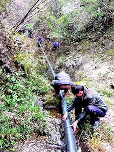 隨后的3個月,施工隊在懸崖邊開辟出1500米的施工道路,炸穿300米的塌方山洞。今年春節前,耗資140多萬元、落差近400米、總長16公里的飲水管道全線完工并通水。