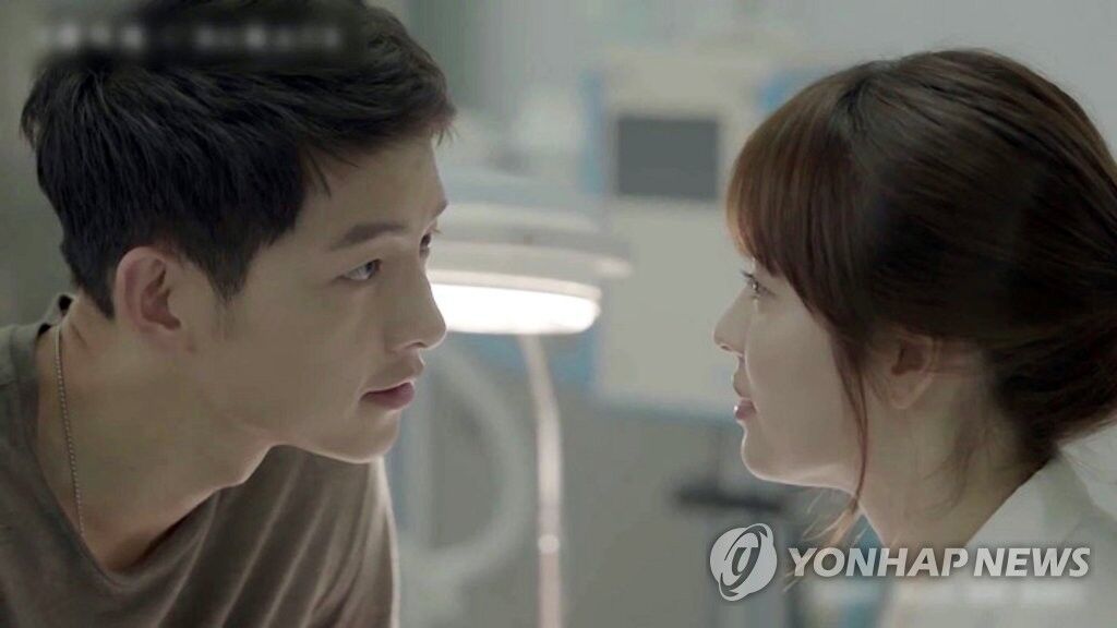 資料圖片:《太陽的后裔》中的雙宋CP(來源:韓聯(lián)社)