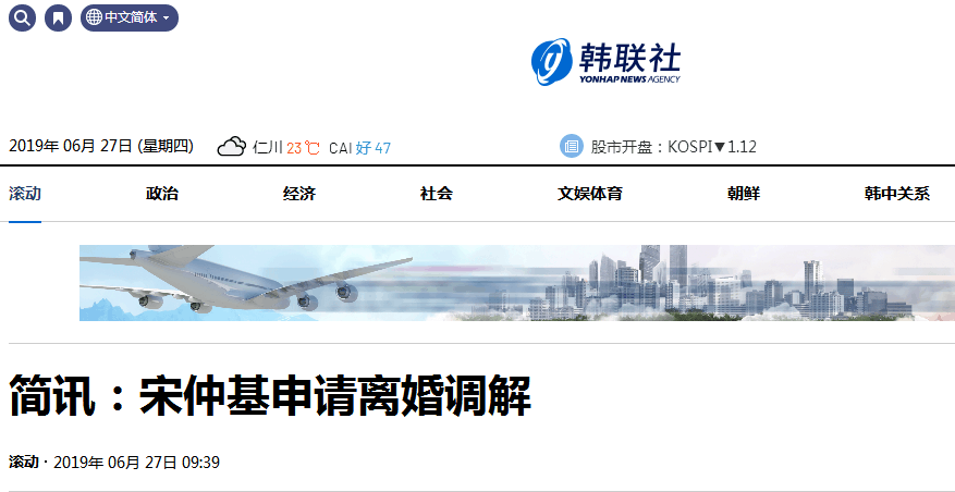 【環(huán)球網(wǎng)快訊】韓聯(lián)社剛剛消息,韓國演員宋仲基27日通過經(jīng)紀公司表示,已申請與宋慧喬的離婚調(diào)解。
