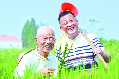 市民政局扶貧干部劉志耀(右)與五保老人在田間